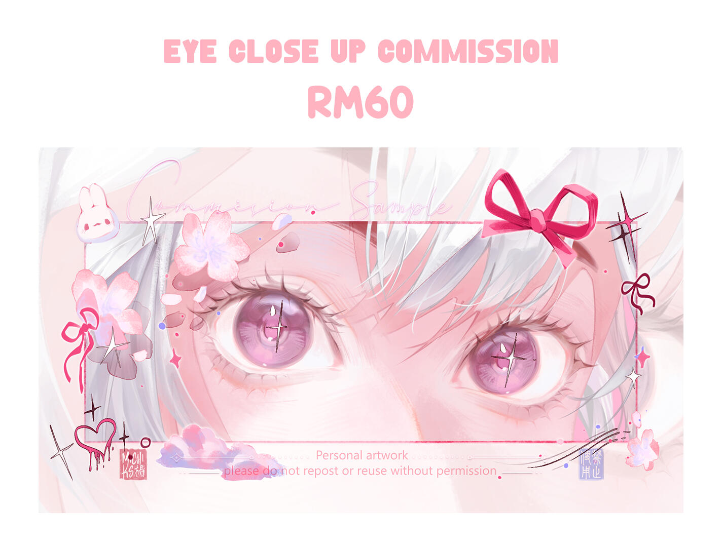 - My commissions are only for chill and patience commissioners, please find other artists if you're not. U_U- I have the right to decline any commission if I feel uncomfortable about it.- Revisions are welcomed to be made but only maximum 3 times of changes are allowed.- I reserve all rights as the creator of the commissioned artwork, and have the rights to showcase the commission works as future samples or post on social media. You are very welcomed to inform me if you feel uncomfortable about it.- My name must be included in the post if commissioner posts on social media.- Physical copies or profits gained from the commission works are not allowed.- You cannot claim the artwork as your own or sell it unless you buy the ownership of the artwork from me, which you can have further discussion with me about this.- Do not feed my commissioned works to any AI program/platform.